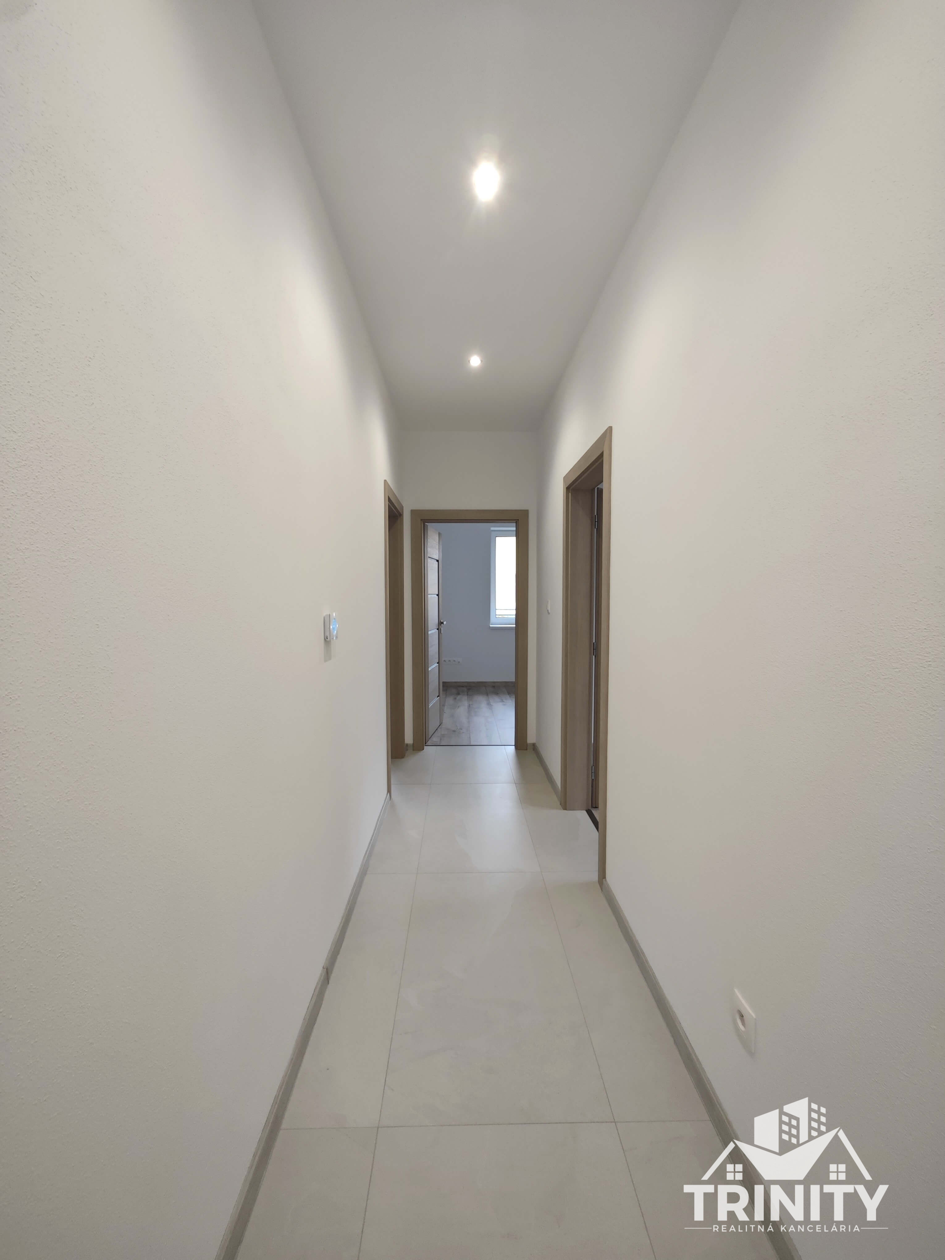 - vstupná chodba, spálňa so šatníkom a kúpelňou, 2x izba, obývacia izba spojená s kuchyňou, technická miestnosť, kúpelňa s wc, špajza/komora, terasa
