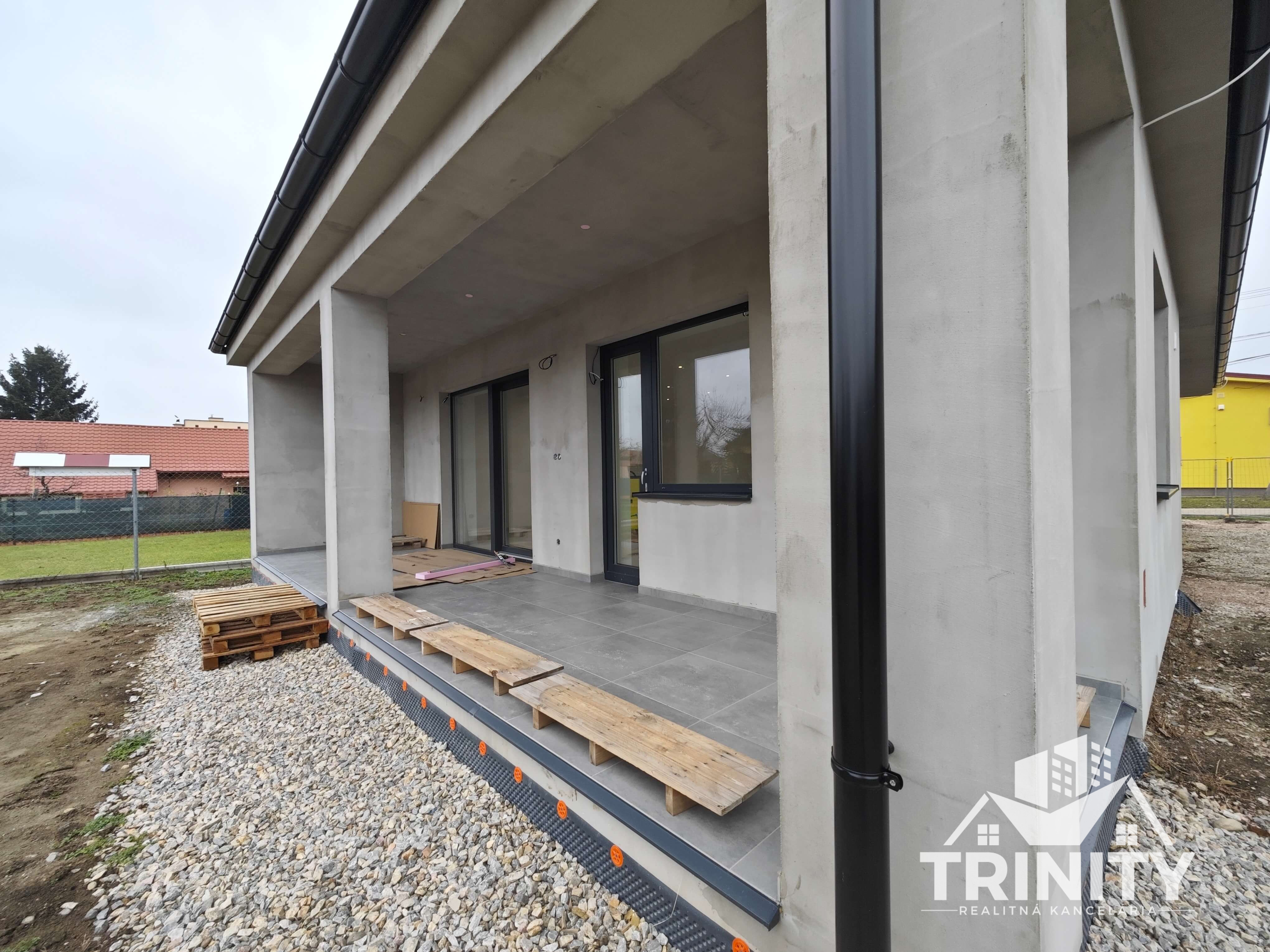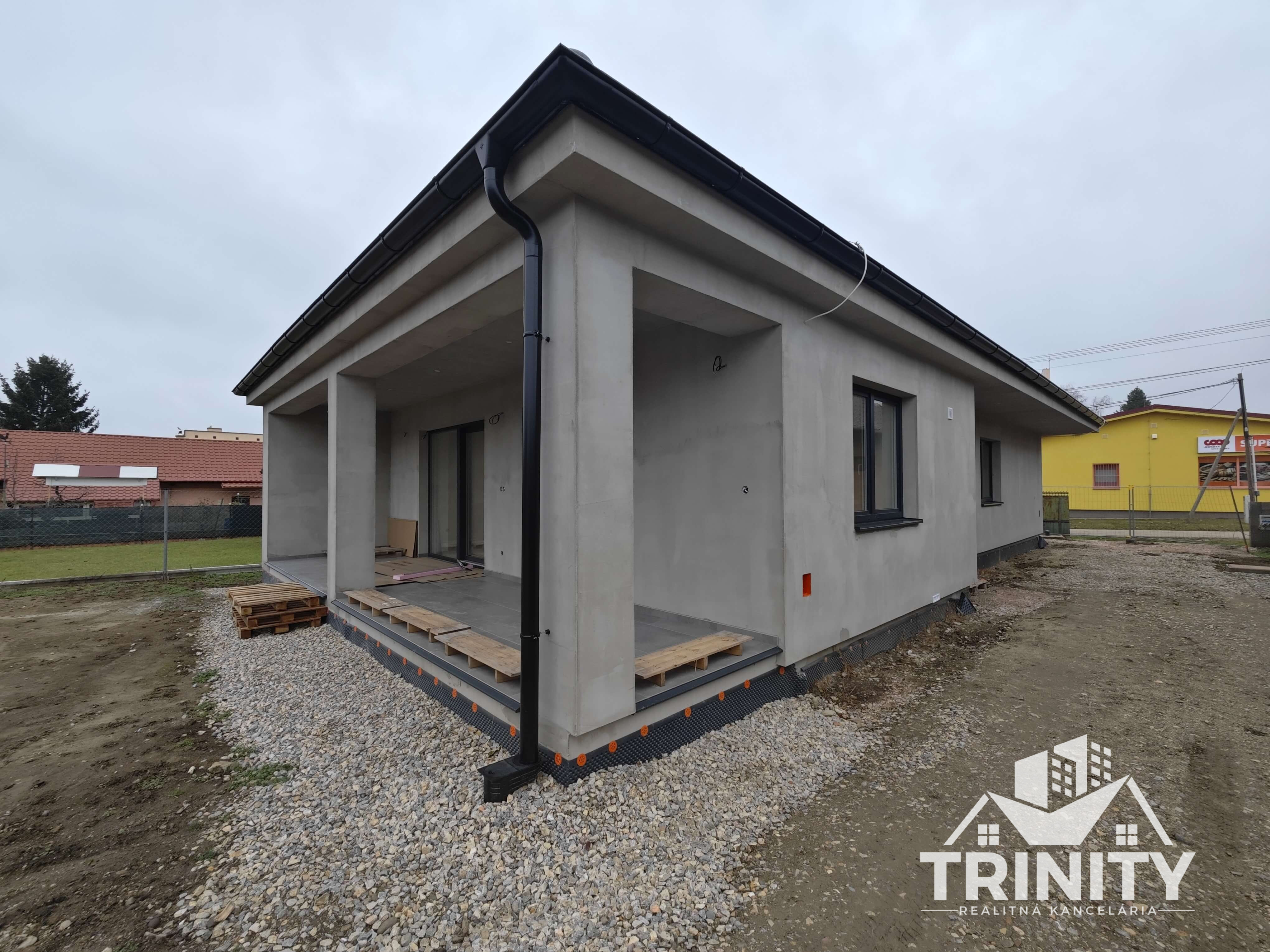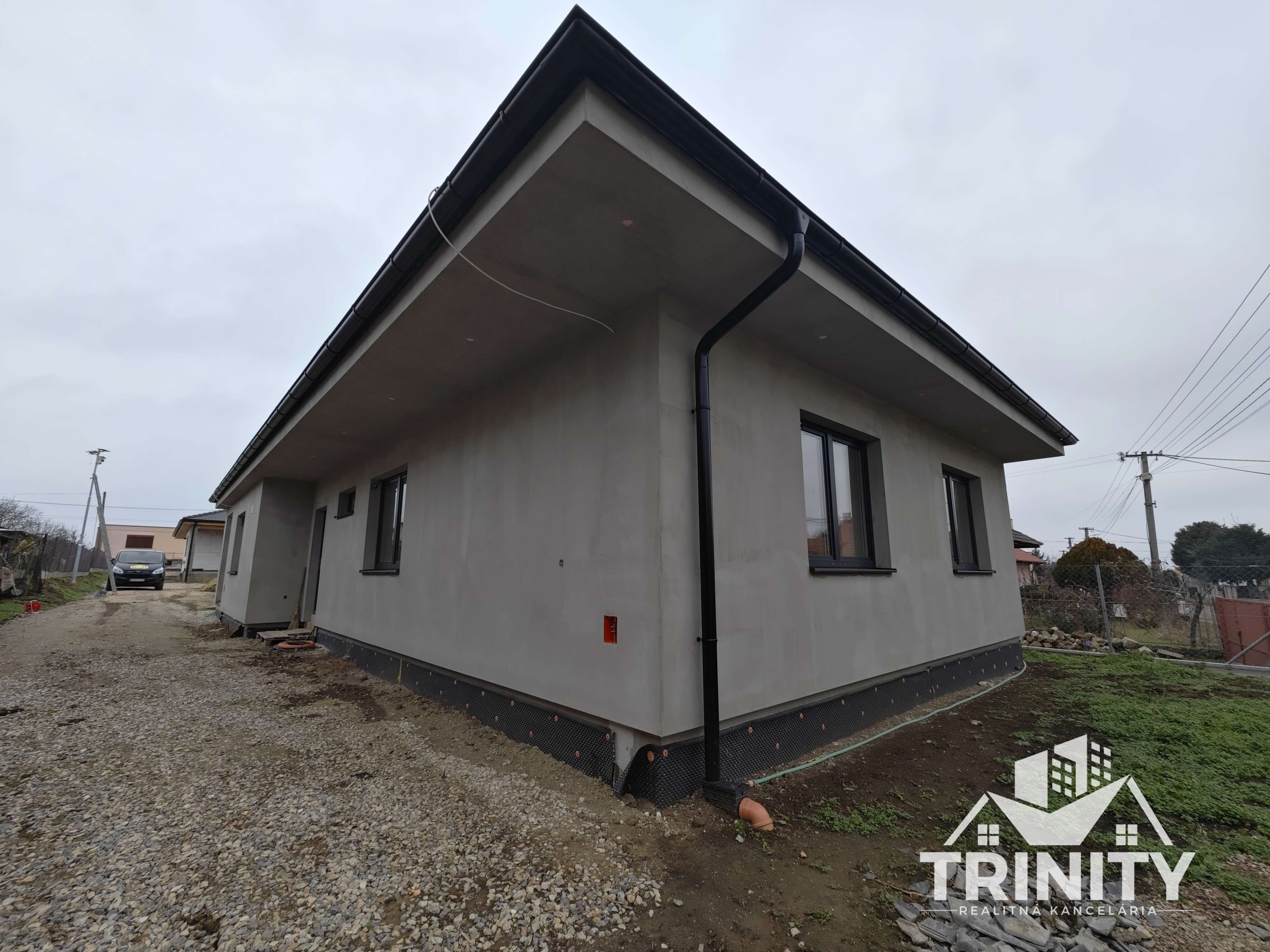 - vonkajšie úpravy: úprava terénu, vyrovannie zeminy, zámková dlažba, prístupový chodníkk domu, parkovacie miesto pre auto, oplotenie pozemku, vsakovacie jamy
