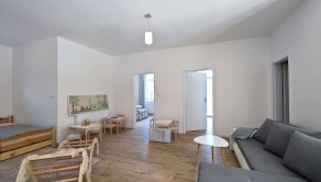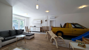 - obývacia izba spojená s kuchyňou a jedálňou, kúpelňa, spálňa s kúpelňou, destká izba