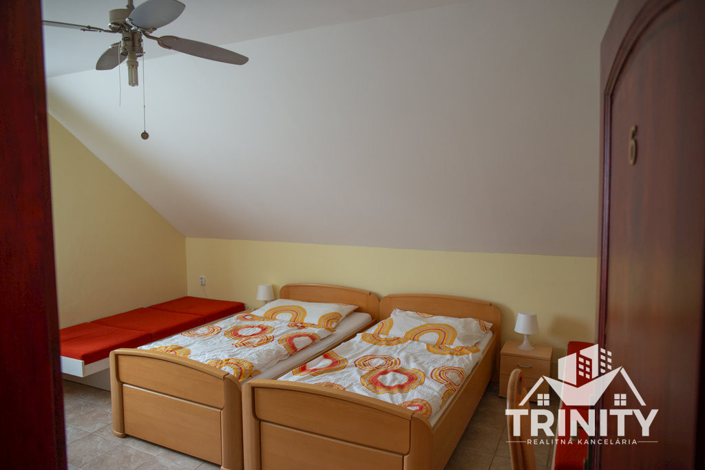 Poschodie: dve trojlôžkové izby, dve štvorlôžkové izby