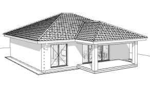 - vstupná chodba, samostatná toaleta, technická miestnosť, kuchyňa spojená s obývacou izbou s výstupom na terasu, spáľňa, šatník, 2 x izba, kúpeľňa s toaletou
