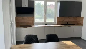 Byt je zariadený kvalitným nábytkom na mieru a modernými spotrebičmi. Dispozícia je praktická, vzdušná a navrhnutá s dôrazom na komfort a funkčnosť. Súčasťou vybavenia je plne zariadená kuchyňa, štýlová kúpeľňa a útulná obývacia časť, ideálna na oddych.
