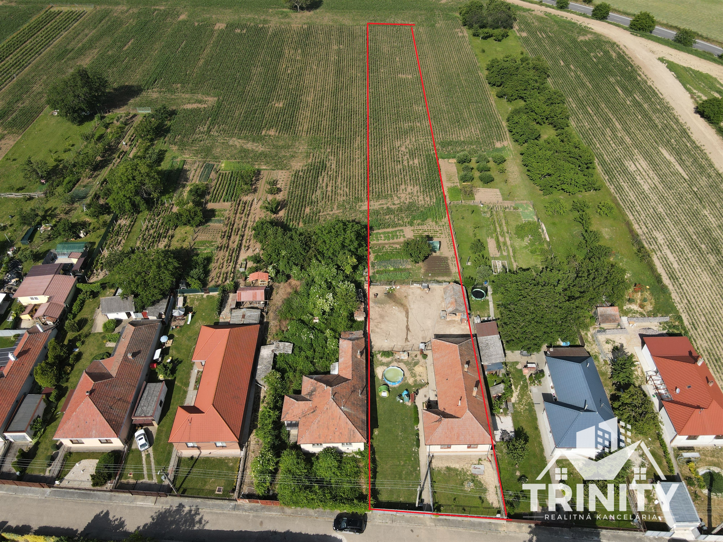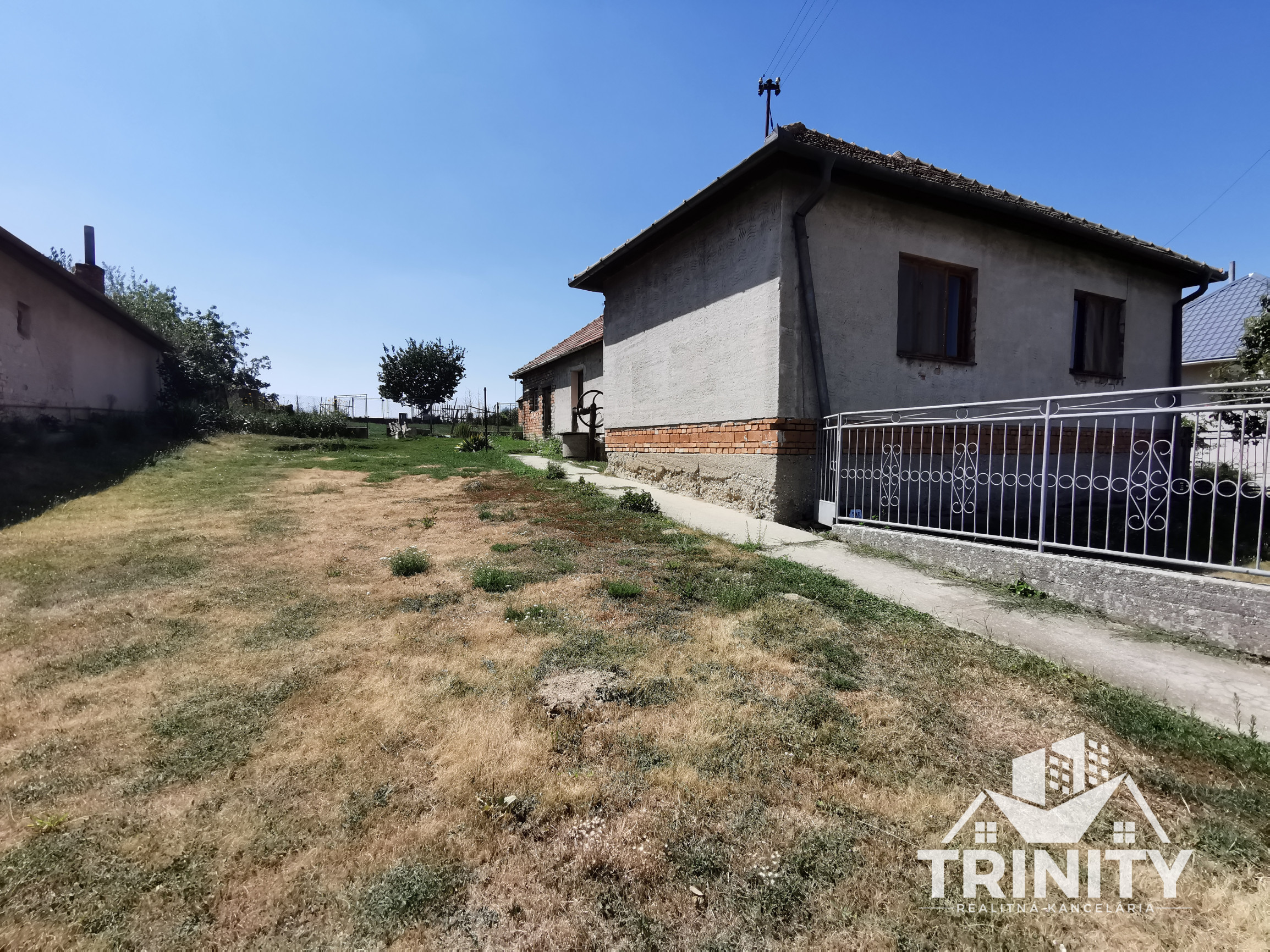 Na pozemku sa nachádza hospodárska budova, studňa, ihličnany a veľký marhuľový strom. Zadná časť domu ponúka možnosť vytvorenia krytej terasy.