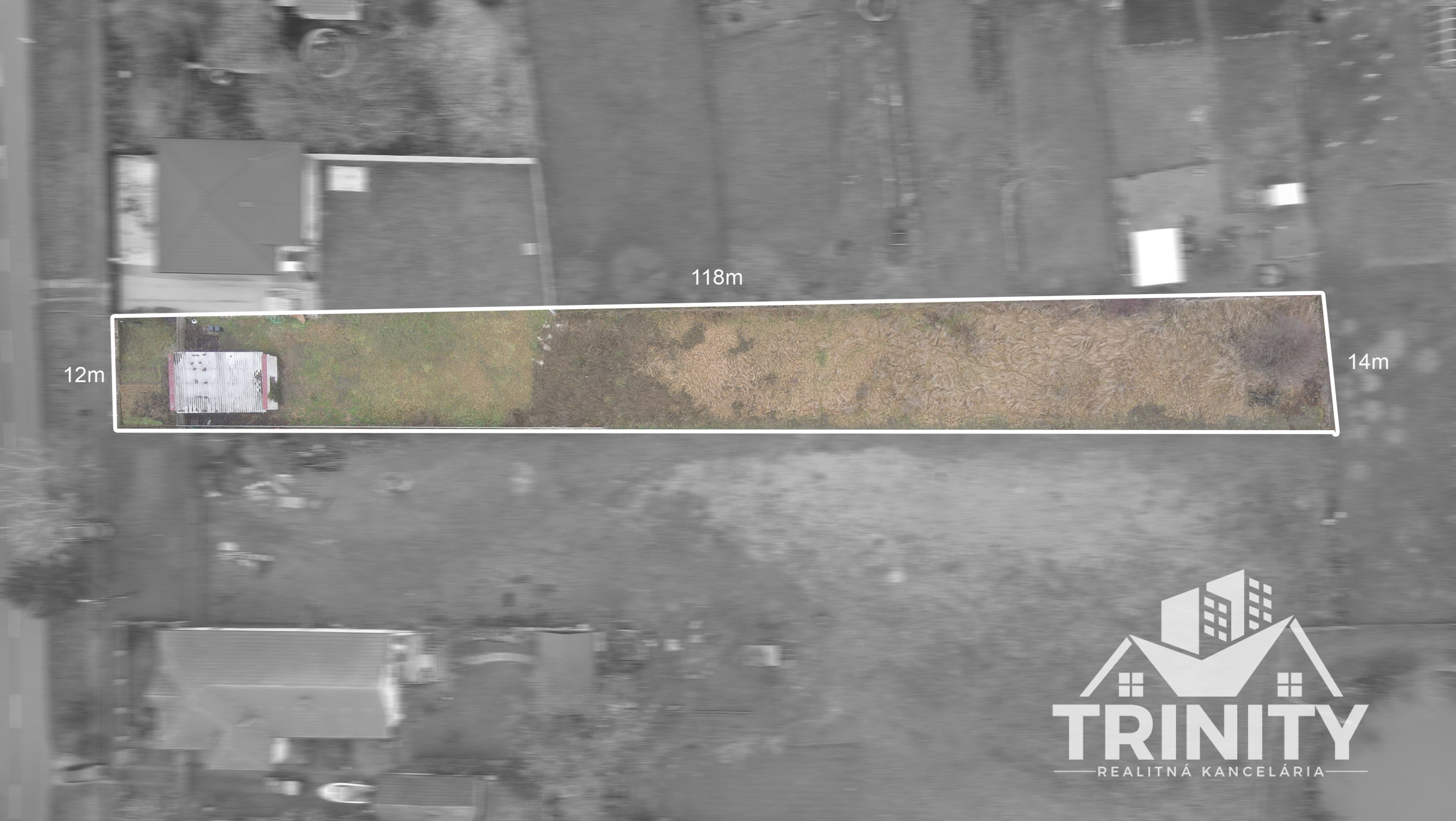- rozmer predná časť okolo 12m zadná časť okolo 14m, dlžka pozemku je okolo 118m