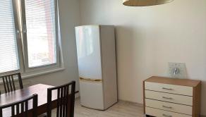 - Kuchynská linka, kombinovaný sporák, chladnička, práčka, stôl, stoličky, komody, skrina, postel