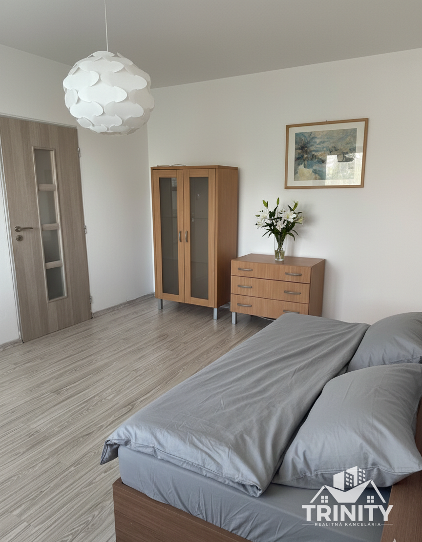 TRINITY Real Vám Ponúkame na prenájom zariadený 1-izbový byt, ktorý sa nachádza neďaleko autobusovej stanice v Nových Zámkoch. V blízkosti sa bytu sa nachádza škola, autobusová stanica, vlaková stanica, reštaurácie, centrum cca 4 minúty pešo.