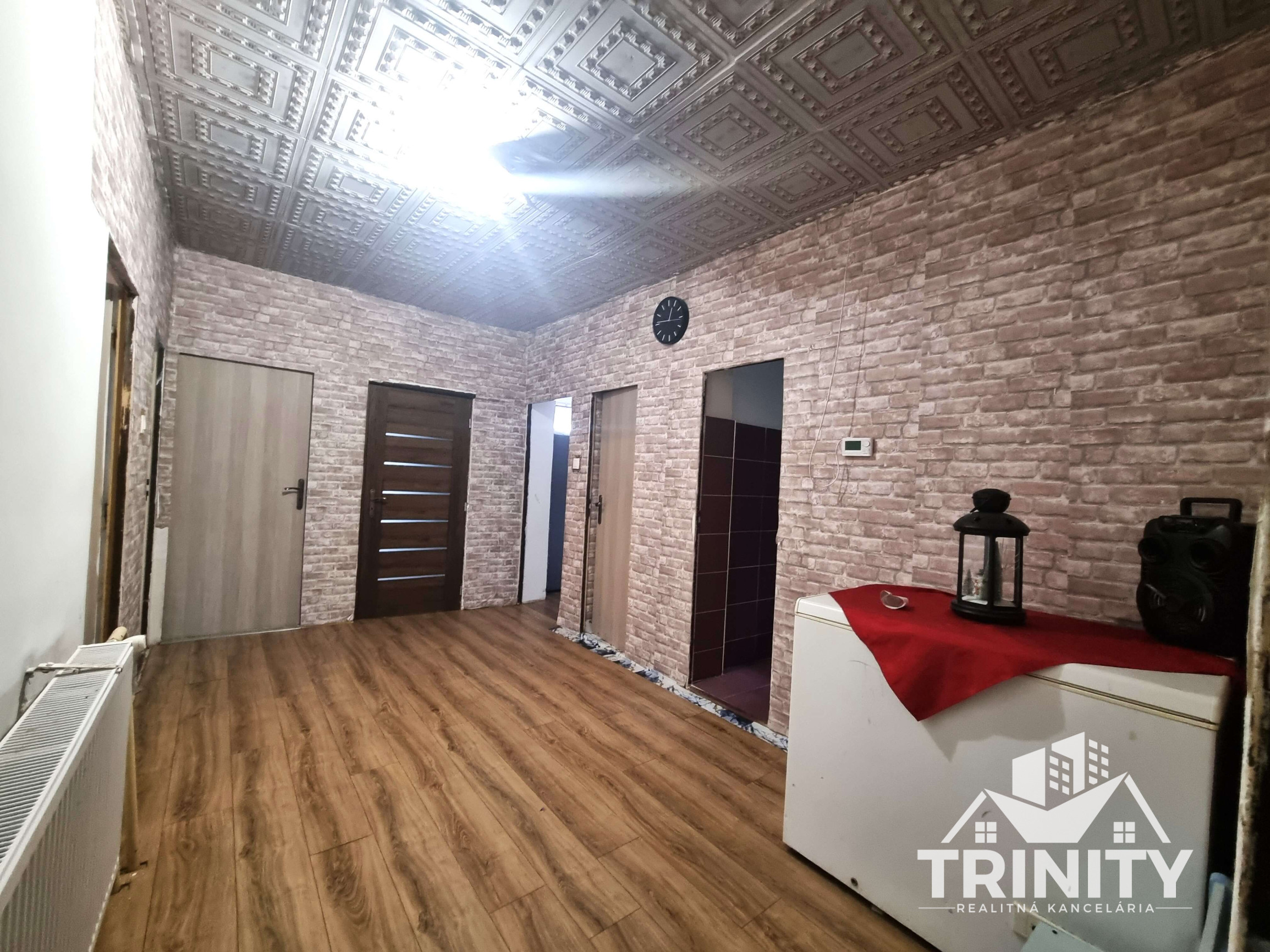 - vstupná predsieň, chodba, kuchyňa, špajza, dve veľké priestranné izby, kúpeľňa s vaňou, samostatná toaleta